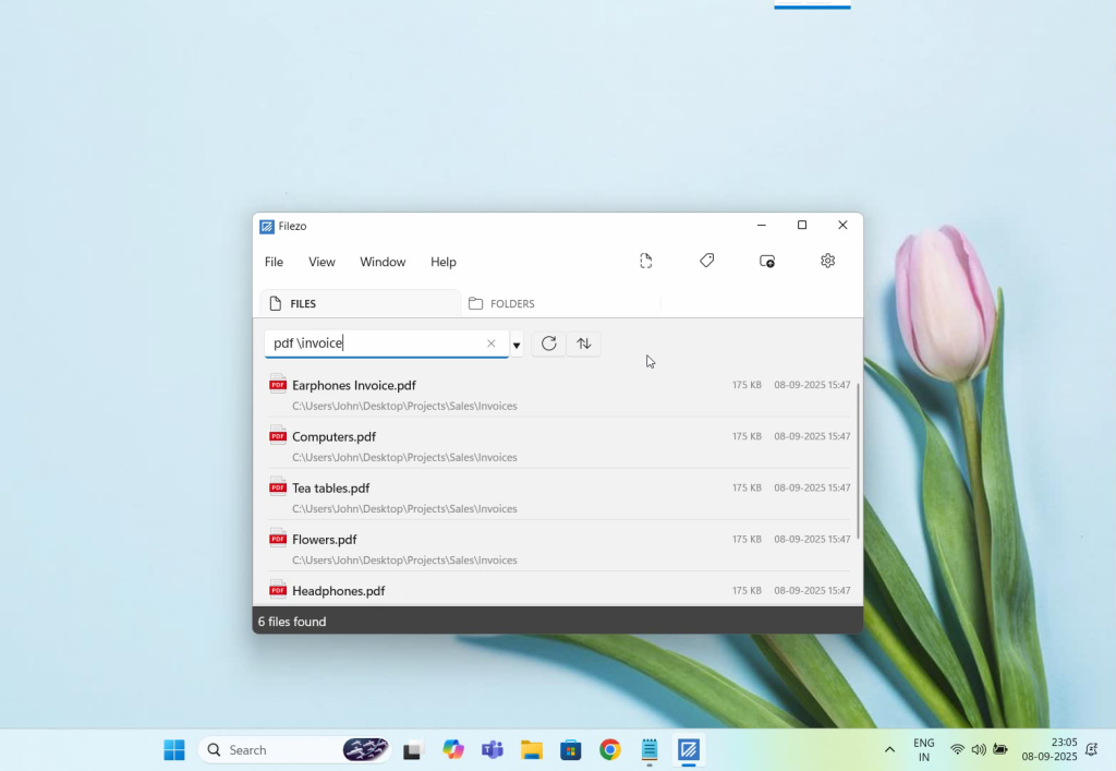 - To check, open the Tags pane in Filezo and double click on the tag. And there are the tagged files.