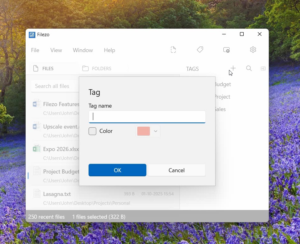 Filezo lets you tag any file or folder in Windows. Tagging files help you to access a group of files/folders etc. in a few seconds, however deep they are in your system. This feature can save a lot of time. You can also send standard email replies to your clients by tagging clipboard items.