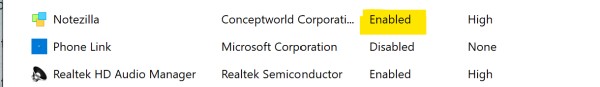 In the Startup list of Windows 11, ensure that Notezilla is "Enabled" as shown below. If not enabled, please enable it manually.