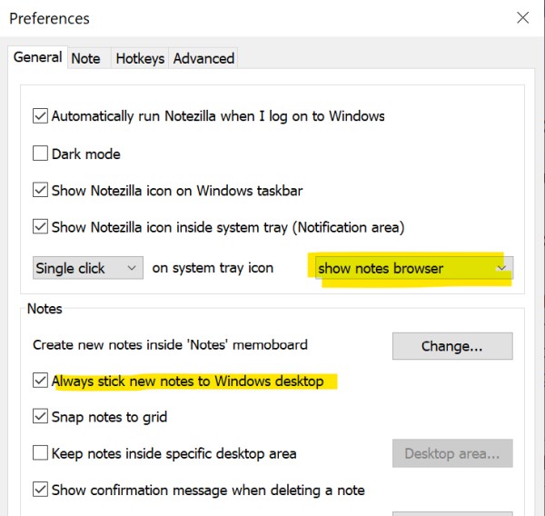 Single click option on the tray icon will open the notes browser, if you choose the below first option. Also new note will be created directly inside the specified memoboard if you choose the second option (below).
